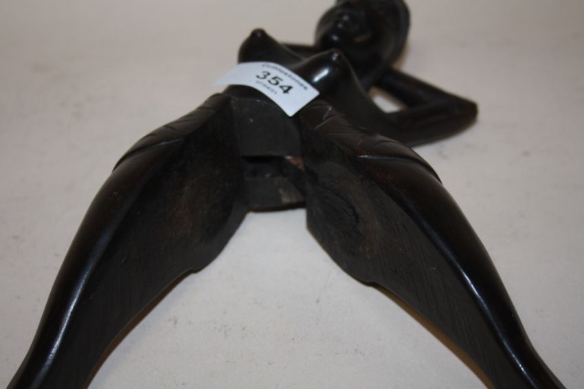 A NOVELTY TREEN NUTCRACKER IN THE FORM OF A FEMALE WITH OPENING LEG, H 33 cm
