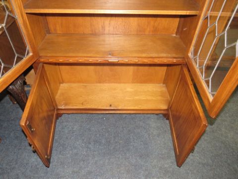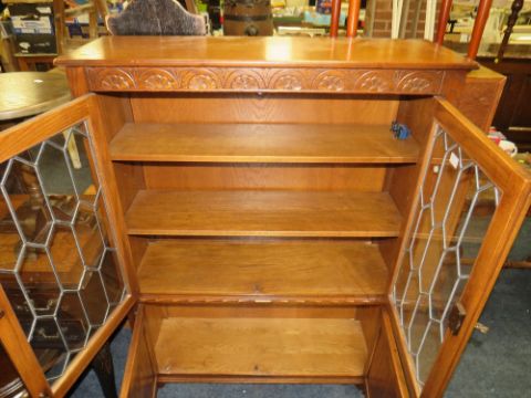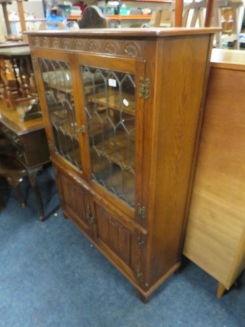 A REPRODUCTION OAK LINENFOLD GLAZED - JAYCEE BOOKCASE W-98 CM