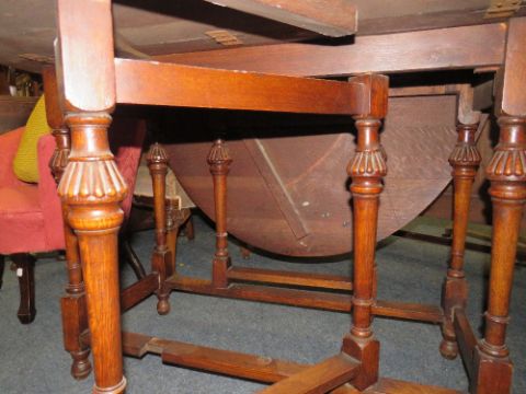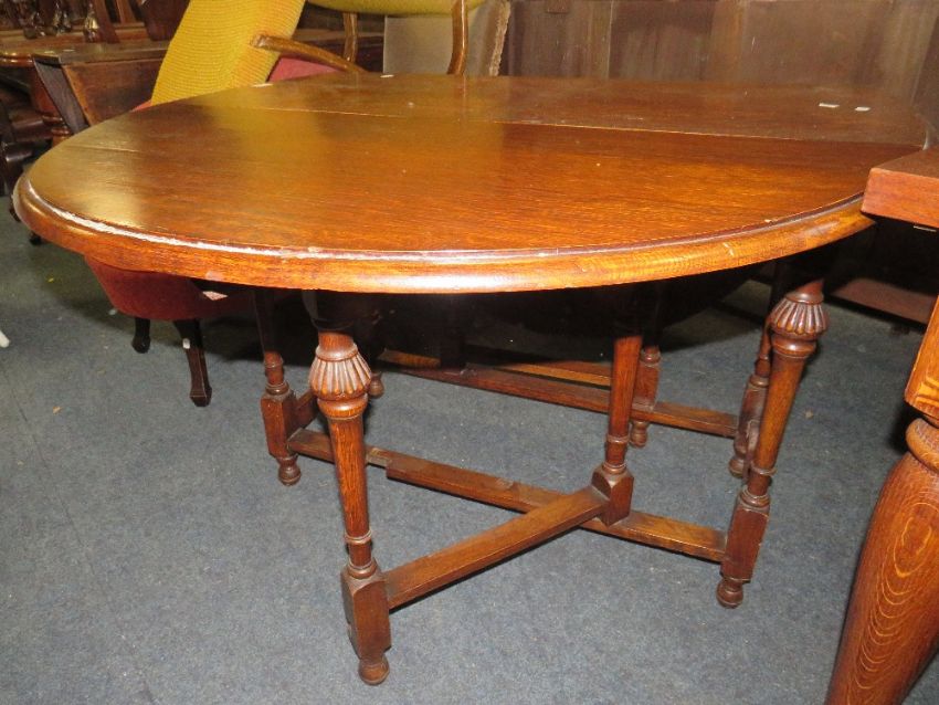 AN EARLY 20TH CENTURY VINTAGE OAK DROPLEAF TABLE