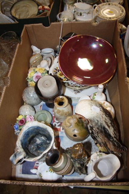 TWO TRAYS OF ASSORTED CERAMICS TO INCLUDE WEDGWOOD AND STUDIO POTTERY