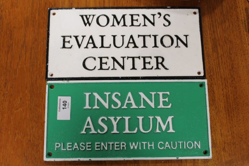 ***AN INSANE ASYLUM SIGN TOGETHER WITH A WOMENS EVALUATION SIGN (2)
