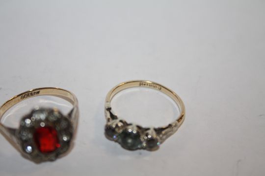 TWO 9 CT GOLD AND SILVER DRESS RINGS