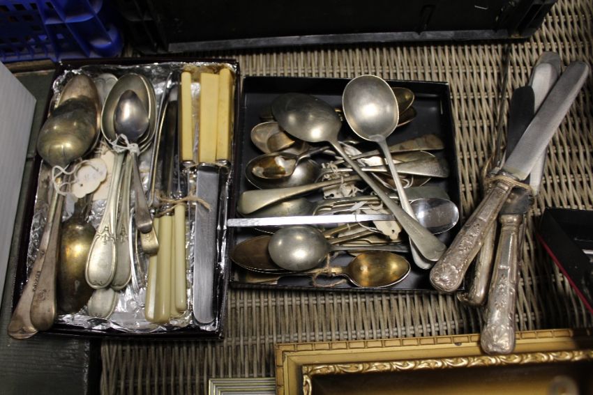 A COLLECTION OF ASSORTED FLATWARE TO INCLUDE ANTIQUE HALLMARKED SILVER TEASPOON ETC.