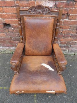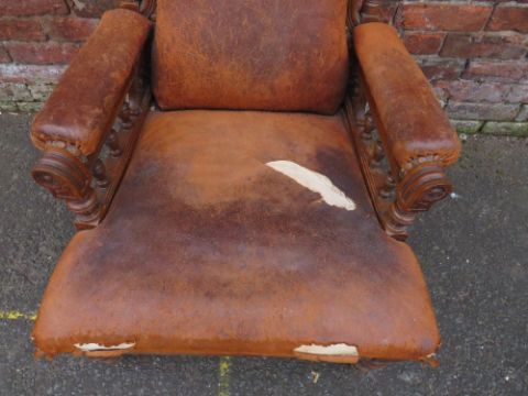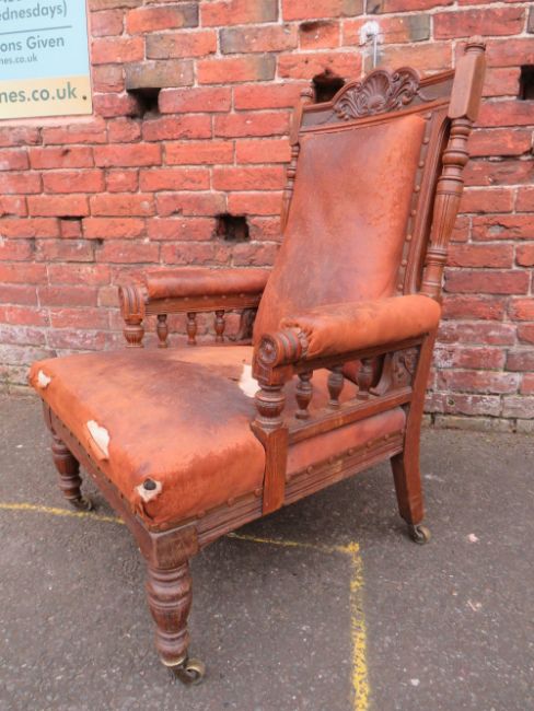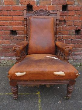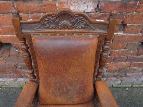 A LATE VICTORIAN CARVED OAK ARMCHAIR