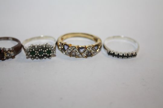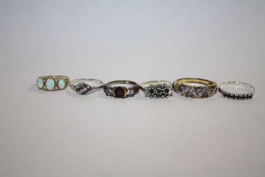 SIX SILVER AND OTHER DRESS RINGS TO INCLUDE GEM SET EXAMPLES