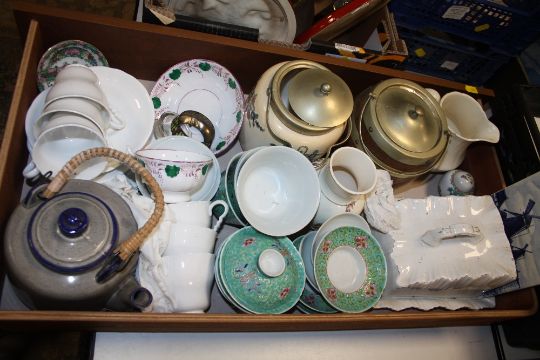 A BOX OF CERAMICS TO INCLUDE ORIENTAL EXAMPLES