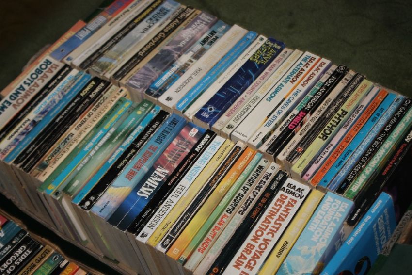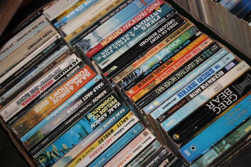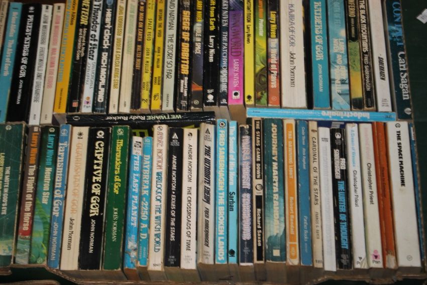 FOUR TRAYS OF SCIENCE FICTION AND FANTASY BOOKS