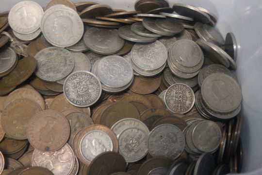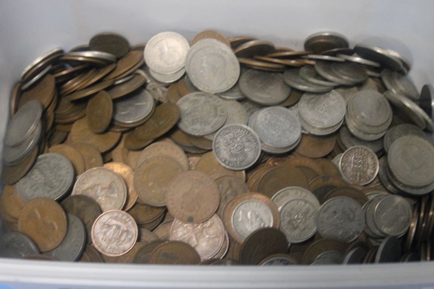 A TUB OF MIXED COINS TO INCLUDE SHILLINGS