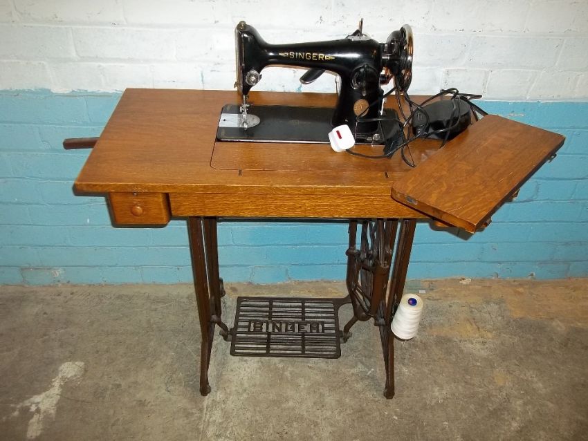 AN ANTIQUE SINGER TREADLE SEWING MACHINE