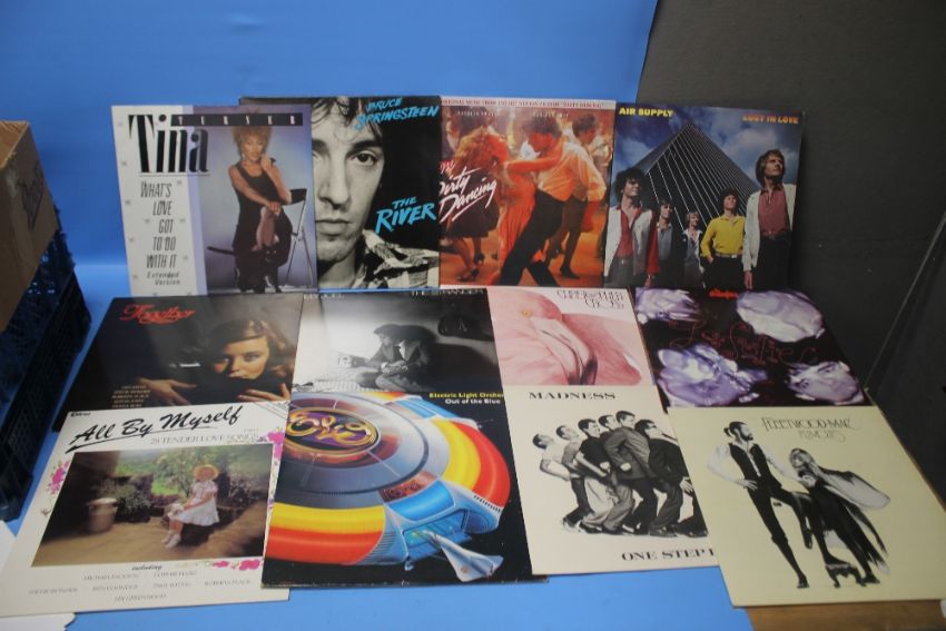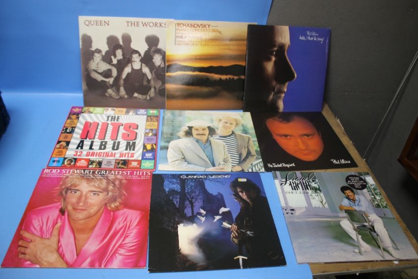 CIRCA 35 LPS IN BLUE CARRY CASE TO INCLUDE ROD STEWART, CLANNAN, CYNDI LAUPER, CARPENTERS, SOME CLASSICAL ETC.
