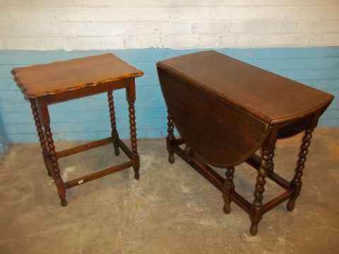 A BARLEY TWIST OAK HALL TABLE AND AN OAK DROP LEAF GATELEG BARLEY TWIST TABLE