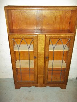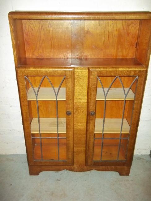 AN EARLY 1900S OAK BOOKCASE WITH SLIDING GLASS DOORS
