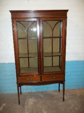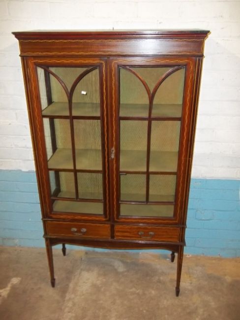 AN EDWARDIAN INLAID DISPLAY CUPBOARD