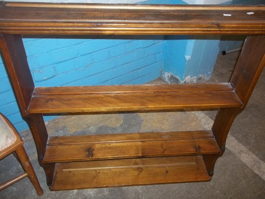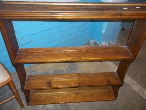 AN EDWARDIAN STYLE CHAIR, A PINE BOOKSHELF AND A GLAZED TWO DOOR BOOKCASE (3)