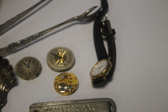 A QUANTITY OF COLLECTABLES TO INCLUDE VINTAGE FOUNTAIN PENS, PENKNIFE, WATCH PARTS ETC.