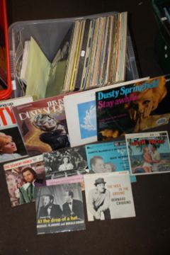 CIRCA 50 LP RECORDS INCLUDING ROCK & ROLL, ELVIS, DUSTY SPRINGFIELD, EASY LISTENING, CLASSICAL ETC. TOGETHER WITH A SMALL QUANTITY OF SINGLES MAINLY FILM THEMES