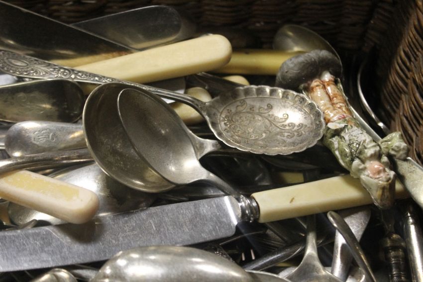 A BASKET OF ASSORTED CUTLERY