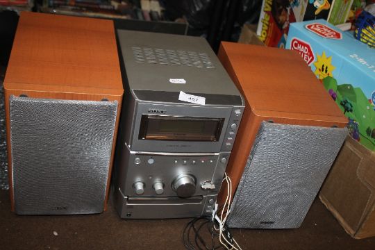 A SONY CD AND TAPE PLAYER WITH MATCHING SPEAKERS