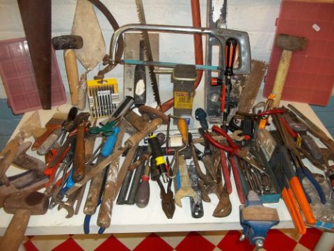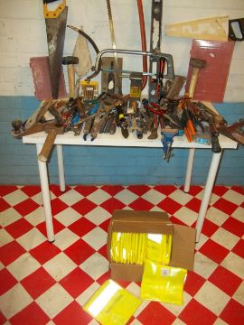 A SELECTION OF NEW REFLECTIVE VESTS AND HAND TOOLS