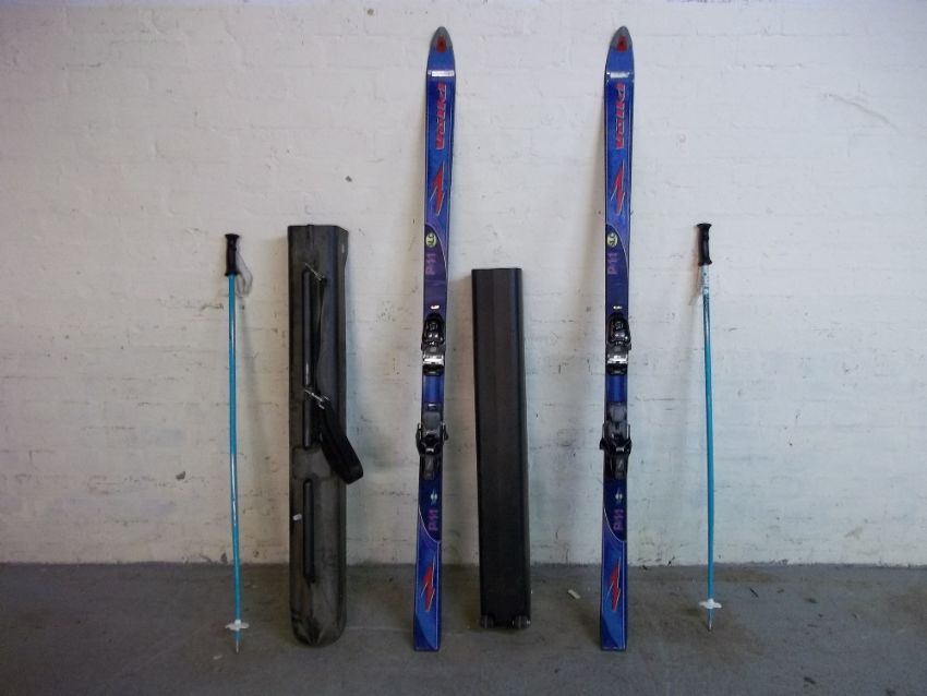 A SET OF VOLKI SKIS AND A SKI TRAVEL CASE