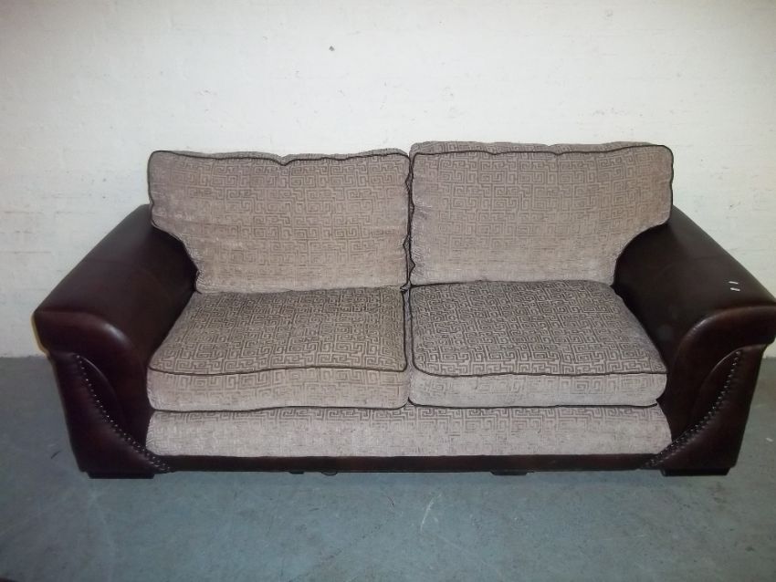 A THREE SEATER FABRIC / FAUX LEATHER SOFA