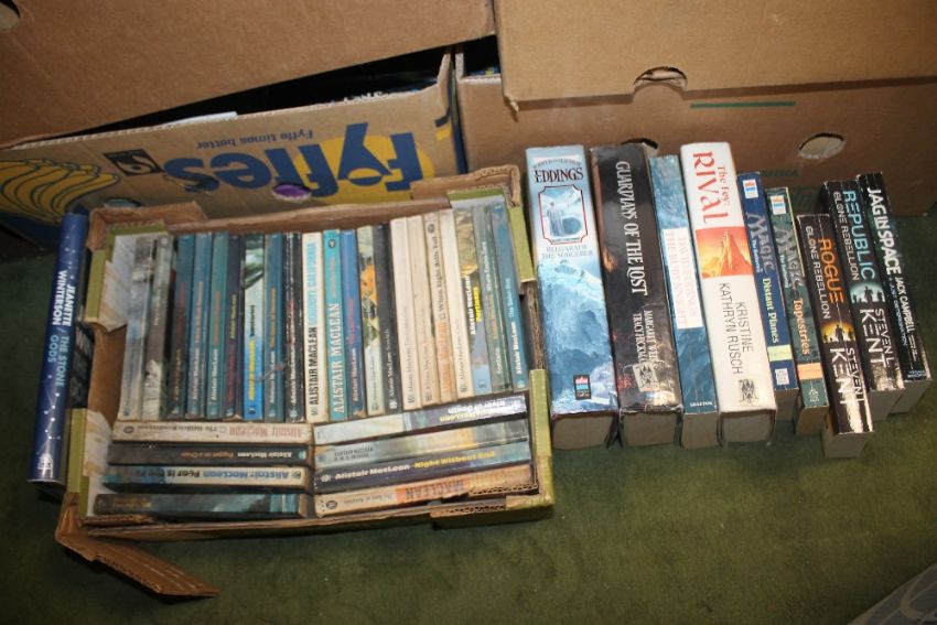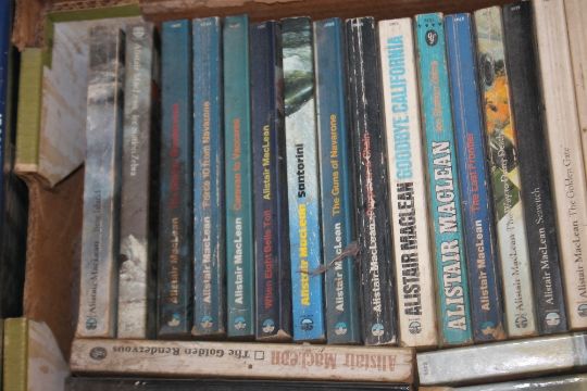 TWO BOXES OF MAINLY ALISTAIR MACLEAN BOOKS