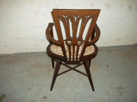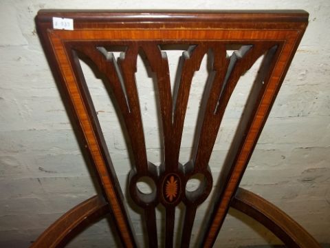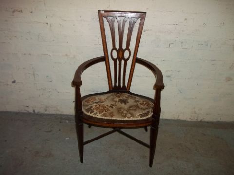 AN EDWARDIAN WIDE CARVER TYPE INLAID BEDROOM CHAIR
