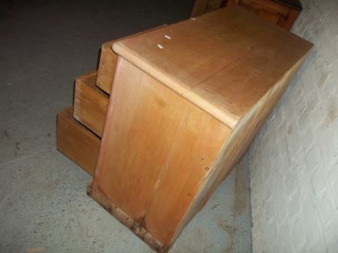 AN ANTIQUE PINE TWO OVER TWO, FOUR DRAWER CHEST OF DRAWERS