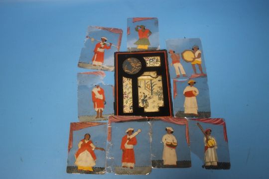 A COLLECTION OF INDIAN SCHOOL PAINTINGS ON MICA SHEETS OF MALE AND FEMALE FIGURES, to include musicians and dancers (all a/f to varying degrees) the largest 10.5 cm x 14 cm