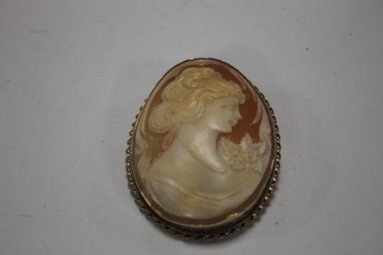 A 9 CT GOLD LARGE CAMEO BROOCH
