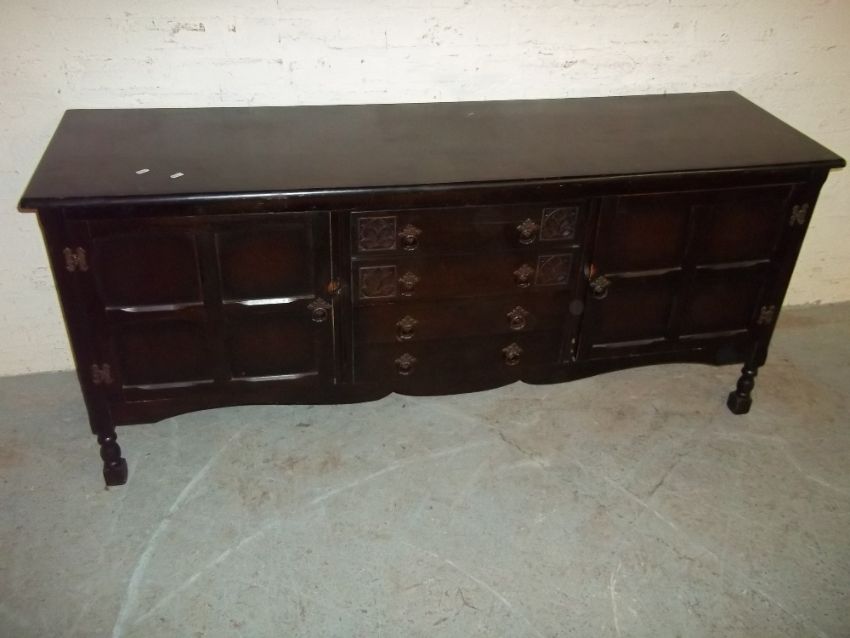 A DARK OAK SIDEBOARD, L 167 cm D 48 cm, H 72 cm