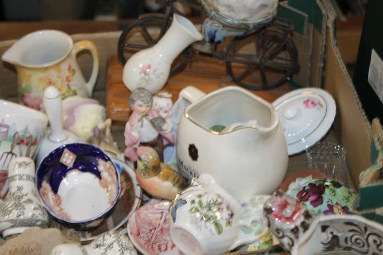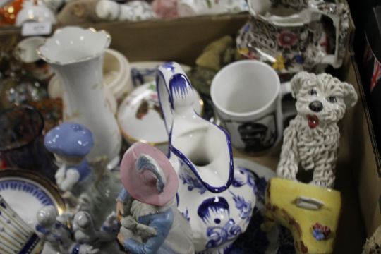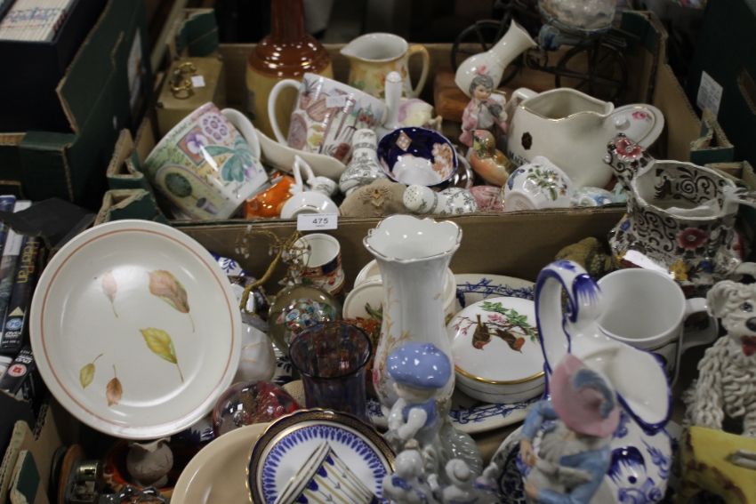 TWO TRAYS OF ORNAMENTS, CLOCK, PAPERWEIGHT ETC.