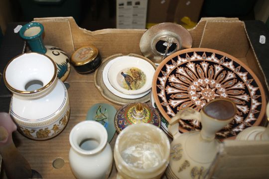 TWO TRAYS OF CERAMICS TO INCLUDE VASES, GINGER JARS, PLATES ETC.