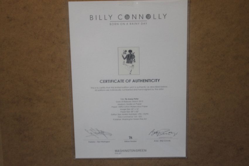 BILLY CONNOLLY - SIGNED LIMITED EDITION FRAMED PRINT "FLY AWAY PETER", RELEASED MARCH 2013, EDITION NUMBER 73/95, 85 X 65 CM