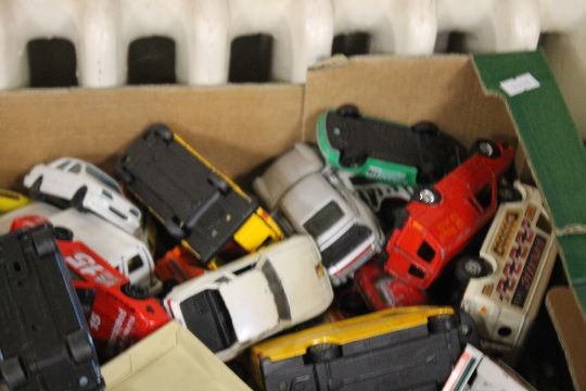 A TRAY OF DIECAST MAINLY CARS AND VANS BY CORGI, WELLY, MATCHBOX, BURAGO ETC. (TRAY NOT INCLUDED)