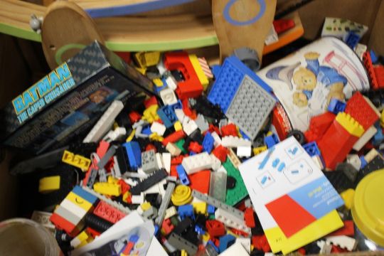 A TRAY OF LEGO TOGETHER WITH A TRAY OF PLASTIC MECCANO (TRAYS NOT INCLUDED)