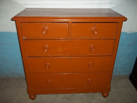 A PAINTED FIVE DRAWER TWO OVER THREE CHEST OF DRAWERS