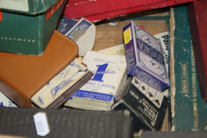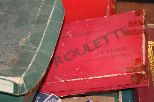 A QUANTITY OF PLAYING CARDS AND GAMES TO INCLUDE ROULETTE, CHESS, PART MONOPOLY SETAND TRAVEL