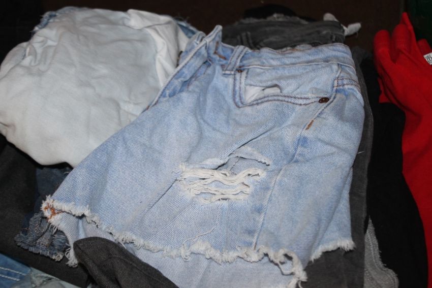 A QUANTITY OF CHILDREN'S CLOTHES TO INCLUDE COATS, SHEEP ONSIE, SHORTS ETC.