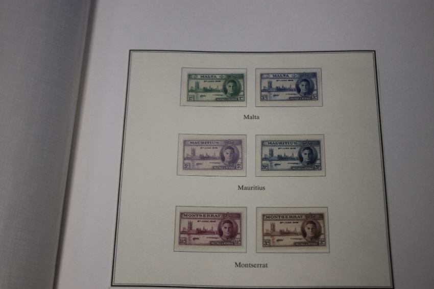 GEORGE V1 VICTORY STAMP COLLECTION 1945 IN ALBUM 92 STAMPS, A-Z British Commonwealth from Antigua Zanzibar