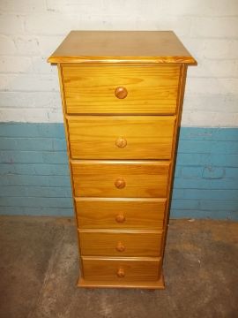 A MODERN SOLID PINE SIX DRAWER NARROW CHEST