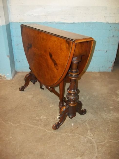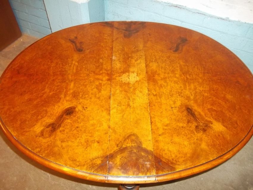 A BURR WALNUT PEMBROKE DROP LEAF TABLE
