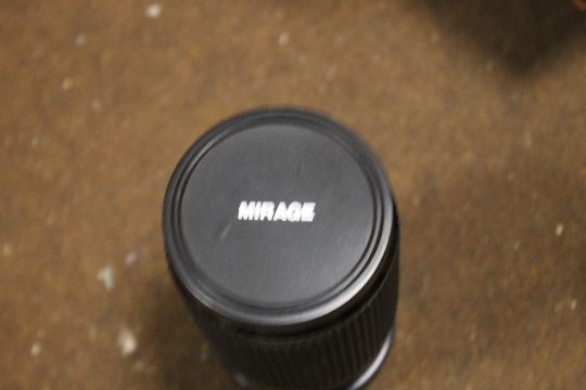 TWO VINTAGE SPOTLIGHTS TOGETHER WITH THREE CAMERA LENSES TO INCLUDE MIRAGE, FUJICA ETC.