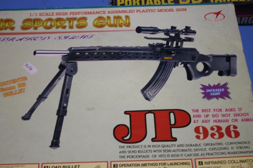 A BOXED AIR SPORT BB GUN AND A BOXED TARGET