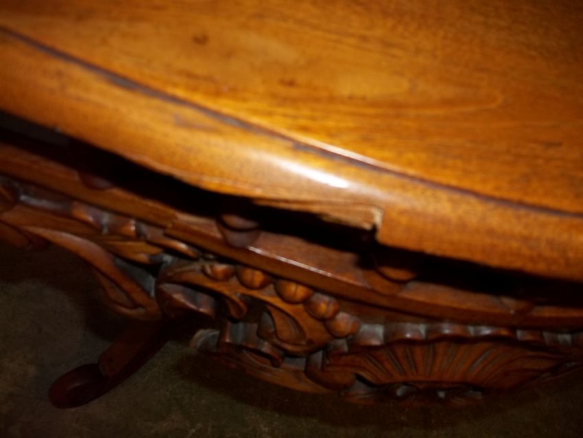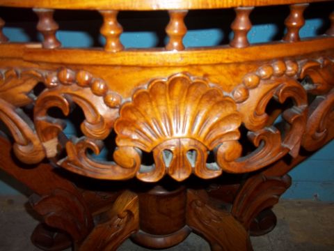 A SERPENTINE FRONTED ORNATE HALL TABLE (SOME DAMAGE BUT FIXABLE)