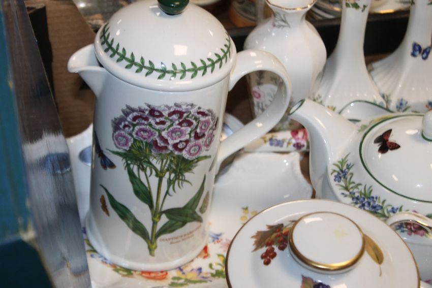 A BOX OF CHINA TO INCLUDE AYNSLEY, PORTMERION, ROYAL WORCESTER, AND WEDGWOOD