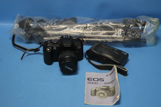A CANON EOS 5000 CAMERA TOGETHER WITH ANOTHER AND A CAMERA TRIPOD (3)