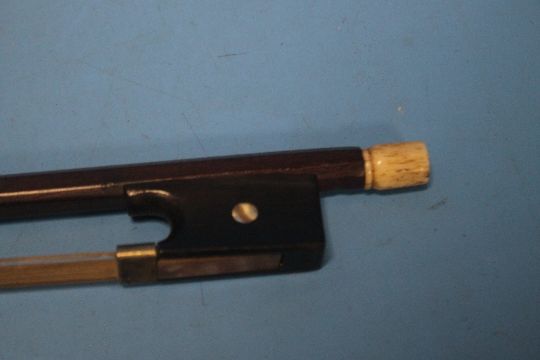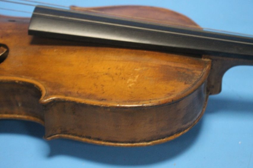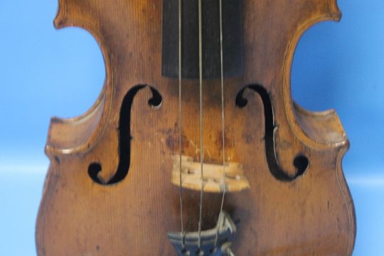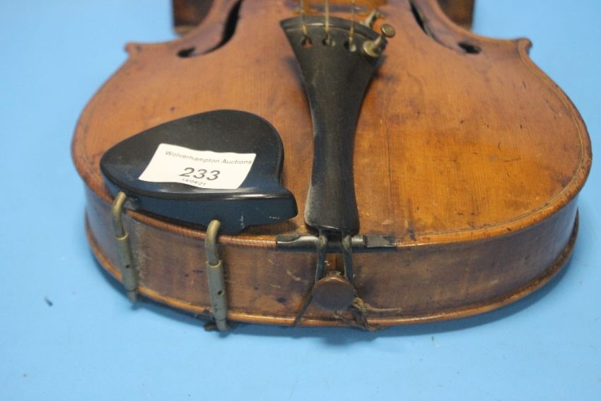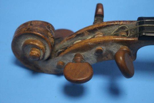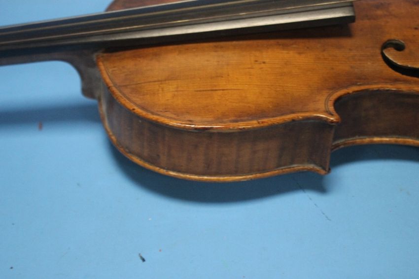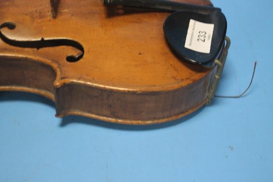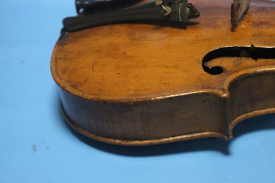 A VIOLIN WITH BOW, UNCASED, NO MAKER'S MARKS