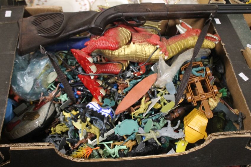A TRAY OF MAINLY PLASTIC SOLDIERS