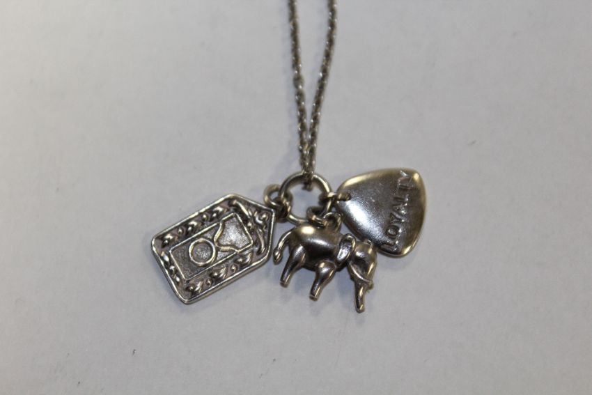 A STERLING SILVER NECKLACE AND CHARM - APPROX WEIGHT 7.6G